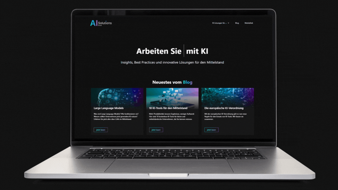 Das AI Solutions Portal ist die neue Plattform für KI-Anwendungen im Mittelstand – mit Fokus auf Marketing & Sales, Controlling und IT. Hier finden Entscheider praxisnahe Inhalte, Best Practices und innovative Lösungen.