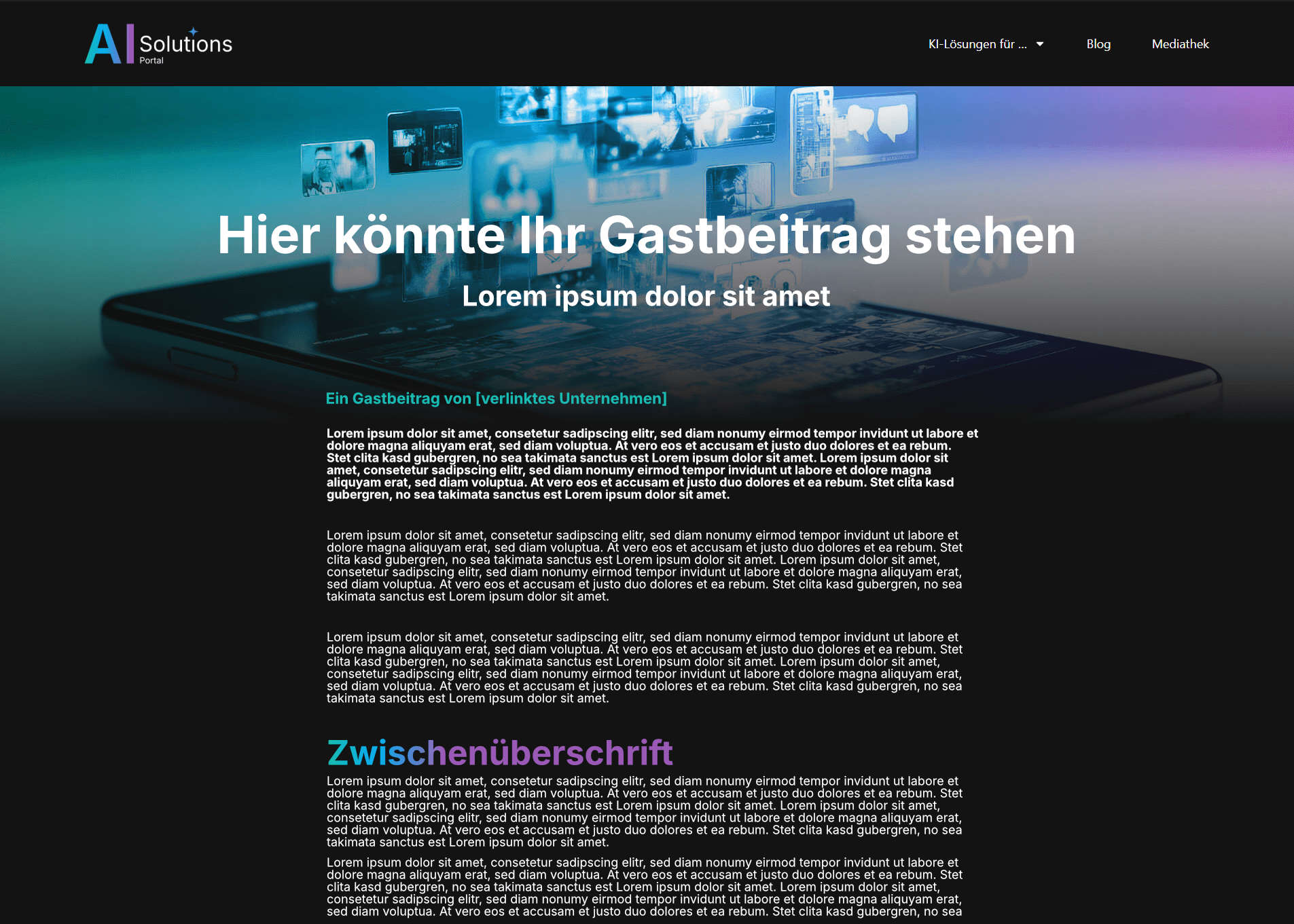 Präsentieren Sie Ihre Expertise in einem Gastbeitrag auf dem AI Solutions Portal! Schreiben Sie über Trends, Tools oder konkrete Use Cases, um Ihre Reichweite zu steigern und Impulse für künstliche Intelligenz im Mittelstand zu setzen. Wie das aussehen könnte, sehen Sie hier.